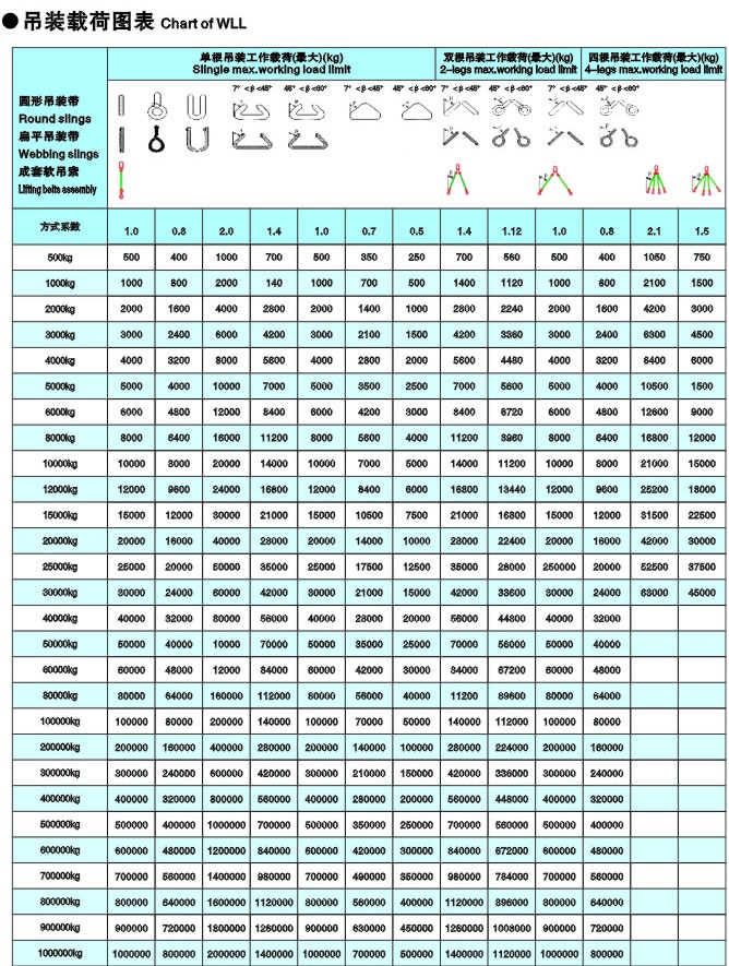 吊装载荷图表